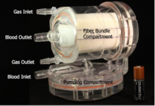 ModELAS is designed to provide respiratory support to both adults and pediatric patients. ModELAS is highly compact and can be easily worn by an ambulatory patient or transported in a wheeled case, allowing patients to maintain mobility and attend PT, vital to recovery. ModELAS provides extracorporeal support removing the risk of ventilation injuries and could be a bridge to support patients waiting for a lung transplant. The design also includes a densely packed hollow fiber membrane bundle as a filter, which ensures gas exchange and reduces the generation of thrombi in the ModELAS.