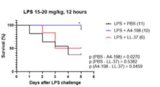 Sepsis, a life-threatening condition where the body overreacts to an infection, is one of the leading causes of death globally. During sepsis, the body produces excess cytokines including IL-, IL-6, and TNF- which can lead to organ failure and death. There is no currently approved therapy to target these cytokine surges and the development of a treatment targeting cytokine production in patients with sepsis could address this critical therapeutic gap. Lipopolysaccharide (LPS) produced from gram negative bacteria is an upstream trigger for these cytokine surges making this pathway a novel treatment target for sepsis. Animal studies confirm A4-198 can blunt LPS-induced cytokine surges, reducing the risk of organ damage and death in sepsis models and could provide a new tool in the armamentarium against sepsis.Applications